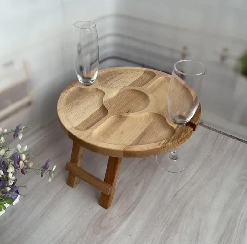 Дерев’яний винний столик для двох — затишок у кожній деталі! Ідеальний для романтичного вечора, пікніка або відпочинку на балконі. Має спеціальні заглиблення для двох келихів та пляшки — усе на своєму місці, нічого не проллється. Компактний, складаний, зручний у зберіганні та транспортуванні. Виготовлений із натурального Буку — виглядає стильно та служить довго. 🪵 Розміри 30см : оптимальні для комфортного розміщення 🍷 Вміщує 2 келихи та пляшку 💡 Ідея для подарунка чи фотозони Створи атмосферу, яку хочеться запам’ятати 💫 СПОСІБ ДОГЛЯДУ: мити під проточною холодною водою, витирати насухо після кожного використання . Час від часу змащувати соняшниковою олією, після чого дати ввібратися. Не використовувати в посудомийній машині, мікрохвильовій печі та духовці.
