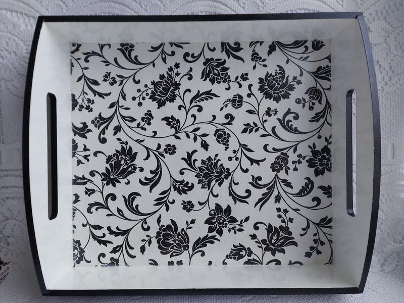 Стильна дерев’яна таця з витонченим чорно-білим орнаментом. Поєднання класичного візерунка та акуратних форм робить її універсальною для дому — для подачі сніданків, чаю чи як декоративний елемент інтер’єру. Розмір 26*30*8,5 см