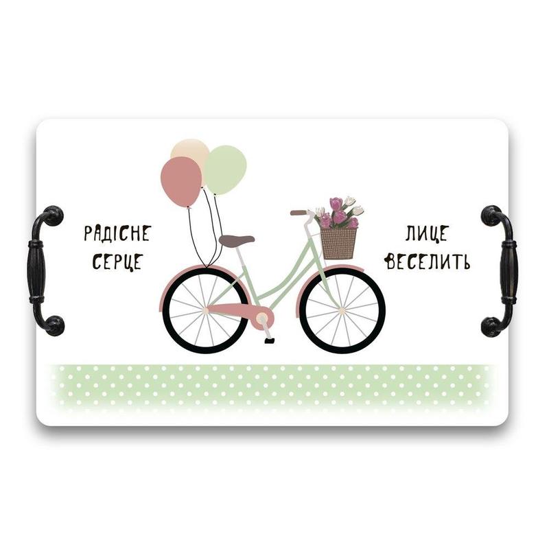 Дерев'яний прямокутний піднос/таця з металевими ручками радісне серце лице веселить 40х27...