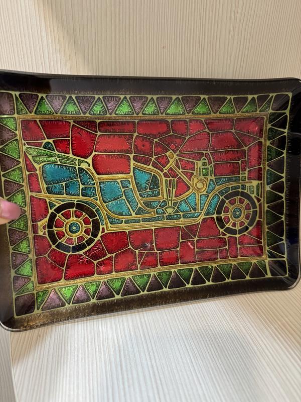 Подарункова тарілка/ піднос вітражне скло, таця, підставка з зображенням ретро автомобіля...