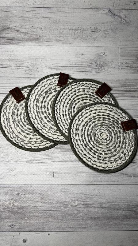 Костери, підставки, плейсмати під гаряче. Виготовлені з бавовняного шнура. З вишивкою, діаметр -14 см - 100 грн Без вишивки, діаметр -10 см - 50 грн