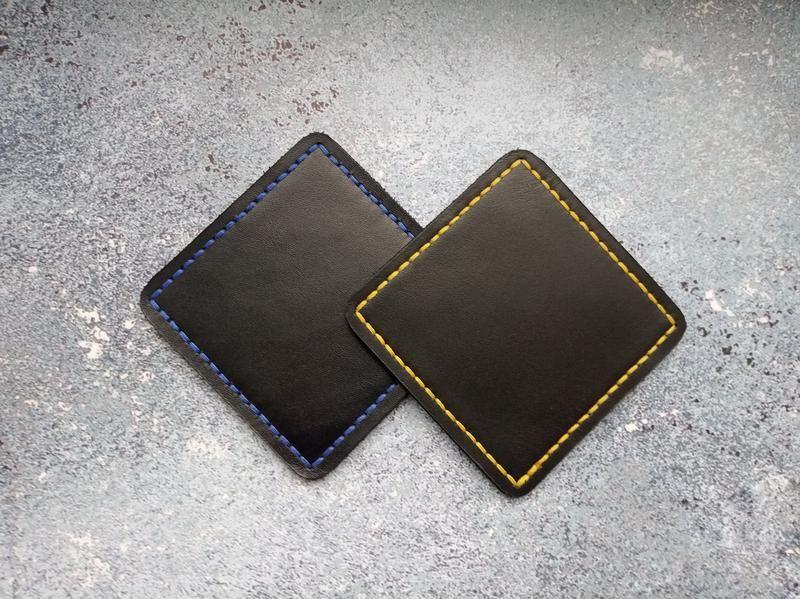 Шкіряна підставка під стакан, кружку чи бокал. Розмір 90*90 мм. Прошита вручну міцною ниткою. Послужить як аксесуар та захист стола від гарячого чи вологи. Ціна вказана за 2 штуки