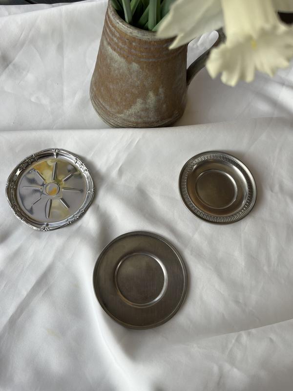 Вінтажні тарілочки (костери) олово та нержавіюча сталь. Цим крихіткам обов’язково знайдеться в вашому домі. Можуть бути використані як підставка під бокал, свічник, для зберігання прикрас чи подачі цукерочок, закусок. Олов’яні в 1 примірнику(200грн/шт), із нержавійки -11шт (150грн/шт)
