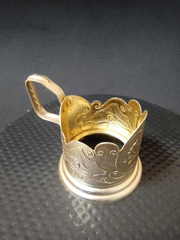 Гарний вінтажний підстаканик,алюміній з напиленням,знизу невелика прим'ятість