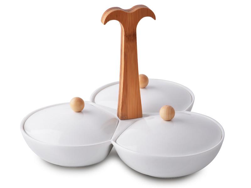 Менажниця з кришками на бамбуковій підставці Lefard 24х24х19см 944-006 матеріал - порцеляна