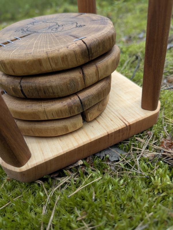 Набор подставок костеров из дуба гравировка эко декор на кухню спилы