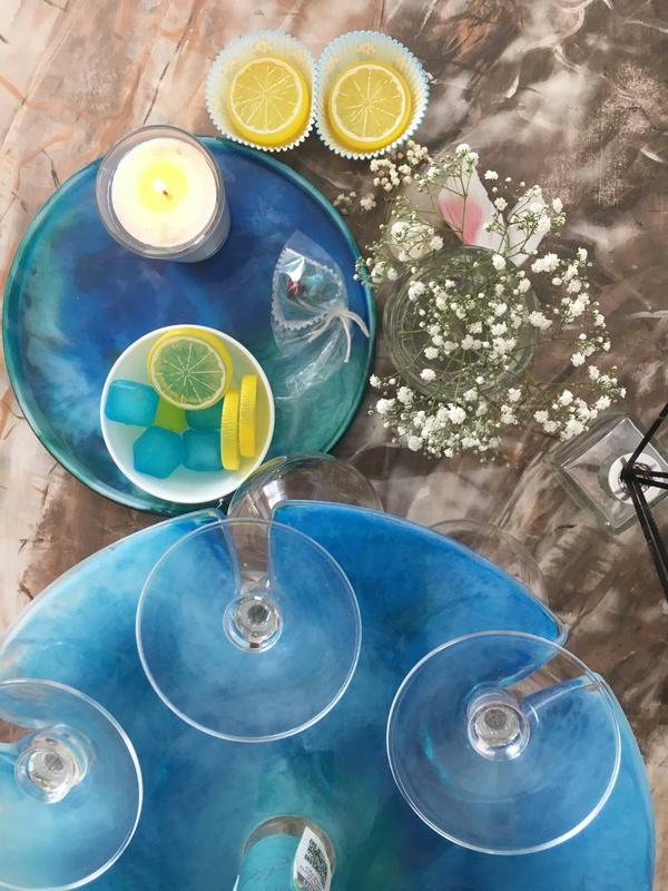 Неймовірно красивий ефектний набір Епоксидна смола. В наявності. Чудовий подарунок собі та своїм близьким. До набору входить: Піднос з бортиком d 25 см, підставка під келихи d 26 см
