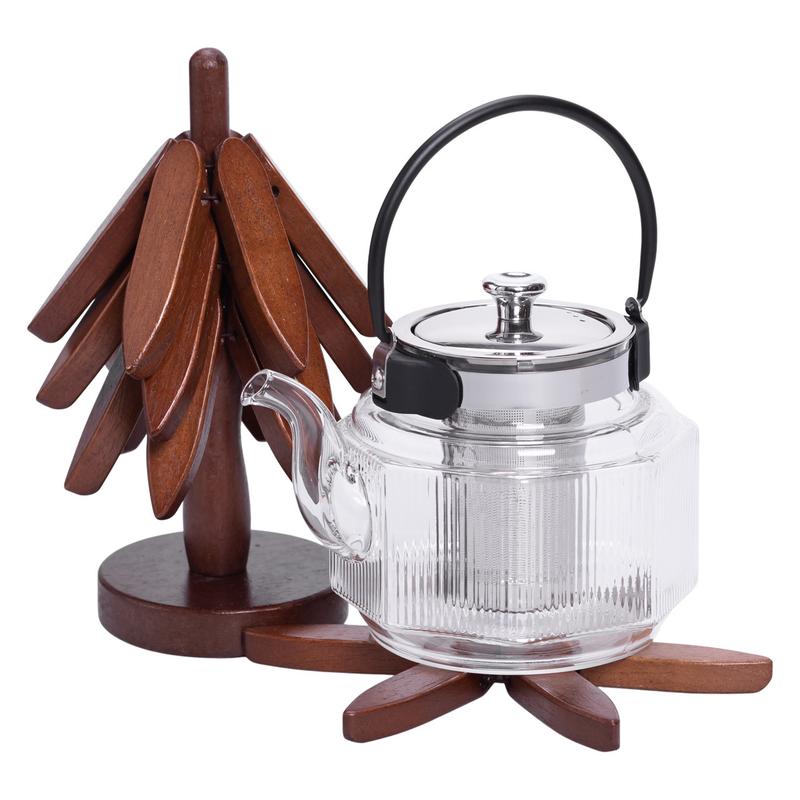 Подставки под горячее «Дерево» выполнены из натурального дерева и имеют оригинальную конструкцию в виде дерева, на котором размещаются подставки в форме листочков. Такой формат удобен для хранения - все элементы компактно держатся на устойчивой основе, занимая минимум места на столе или кухонной полке. Основные характеристики набора подставок под горячее: Материал: бамбук; Диаметр подставок: 19 см; Высота держателя: 22.5 см; Диаметр держателя: 9 см; Вес набора: 500 г. Особенности подставок под горячее из дерева: Изготовлены из натурального дерева, экологичны и безопасны. Надёжно защищают поверхность стола от высоких температур и царапин. Компактно складываются на специальной деревянной стойке, экономя место на кухне. Удобны в использовании -- легко доставать и ставить обратно. Стильный и аккуратный дизайн подходит для любого интерьера. Долговечные, выдерживают регулярное использование. Каждая подставка надежно защищает поверхность от следов горячих или холодных напитков, предотвращая появление пятен и царапин. Натуральное дерево приятно на ощупь, имеет привлекательную текстуру и легко очищается от загрязнений. Конструкция устойчива и практична для повседневного использования. Такой набор станет не только функциональным элементом для кухни или гостиной, но оригинальной деталью интерьера. Он подходит для дома, офиса или в качестве подарка.