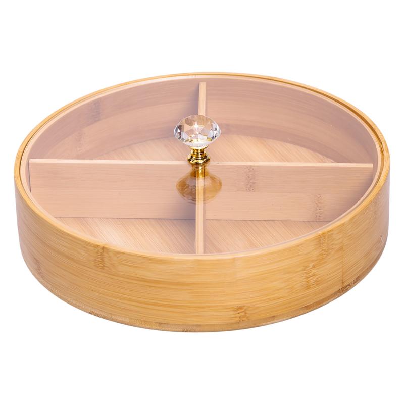 Менажница деревянная на 4 секции с крышкой для закусок ø25 (см) круглая hb-40-3