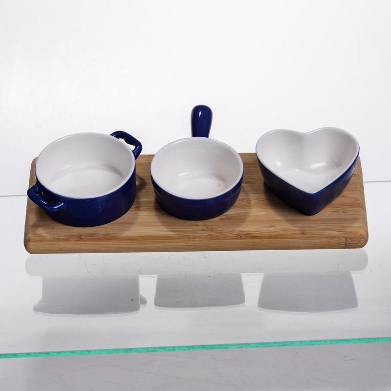 Набор менажниц фарфоровых для закусок 3 (шт) по 50 (мл) менажницы на бамбуковой подставке...