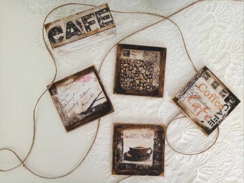 Набір підставок під гаряче в техніці декупаж. Розмір 9*9 4штучки в підставці