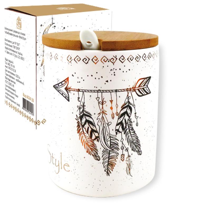 Сахарница с ложкой и бамбуковой крышкой 'boho style' 320мл