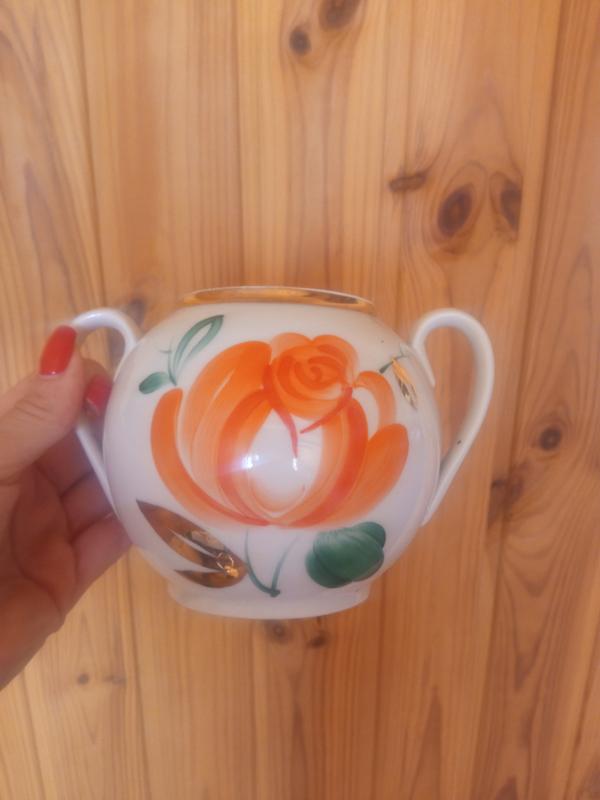 Продам винтажную сахарницу с позолотой,крышка потеряна.Изготовлена в прошлом веке .