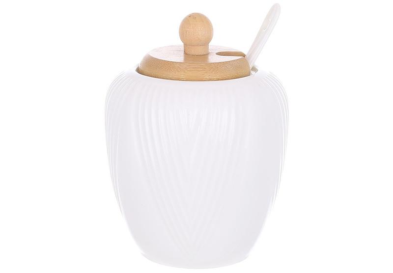 Цукорниця Bona Di Grace 289-408 320 мл біла Цукорниця Bona Di Grace 289-408 виготовлена з фарфору. Така цукорниця легко миється і збереже привабливий зовнішній вигляд протягом тривалого часу. Дуже красиво виглядатиме при сервіруванні столу під час чаювання. Характеристики: - Тип: цукорниця - Матеріал: порцеляна - Матеріал кришки: бамбук - Матеріал ложки: порцелян - Об'єм: 320 мл - Розміри: 5х8х12 см - Колір: білий - Серія: Naturel - Виробник: Bona Di