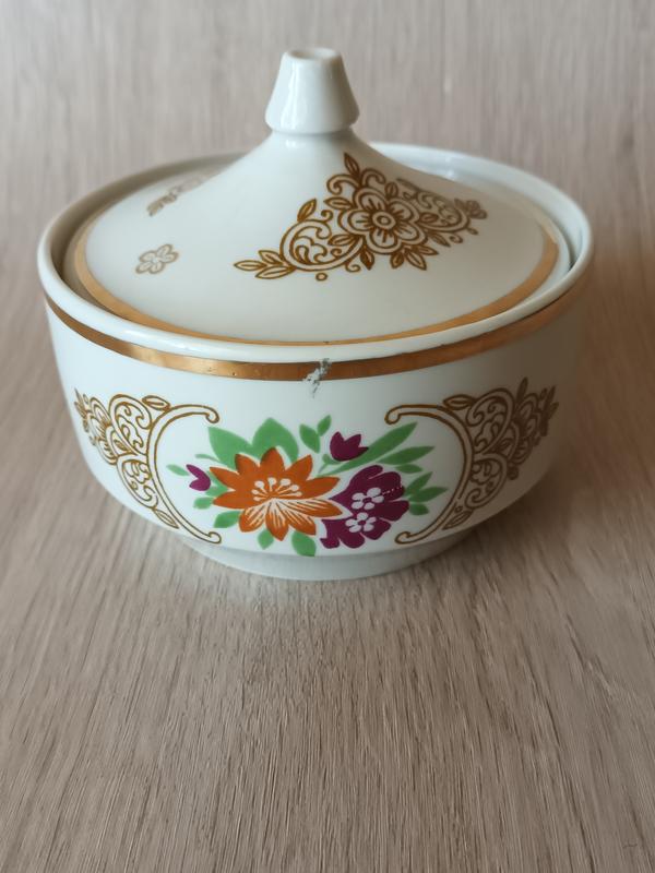 Цукорниця в чудовому стані, наявні дуже незначні сліди часу та використання. Виробництво середини 60-х Вербілковський порцеляновий завод. Діаметр по денцю 7,8 см. Діаметр по верху 10,2 см. Висота без кришки 5.5 см. 📦 відправка новою поштою та кріпою під час оплати на карту. Накладеної платежі немає.