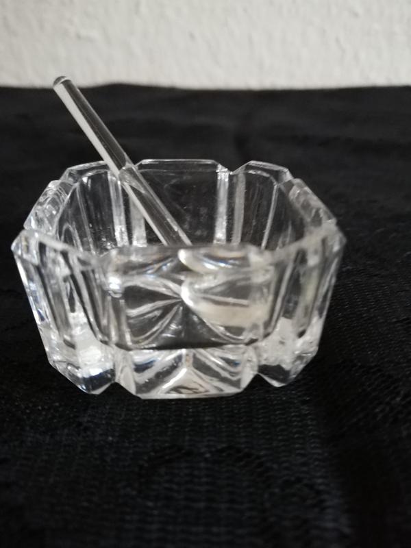 Хрустальний набір для замінника цукру вазочка та ложечка розмір 3,5 см. х 3,5 см.