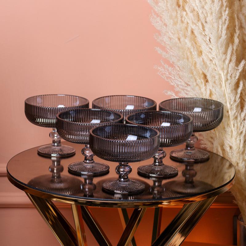 Креманка для морозива фігурна прозора ребриста з товстого скла набів 6 шт сірий dm-11