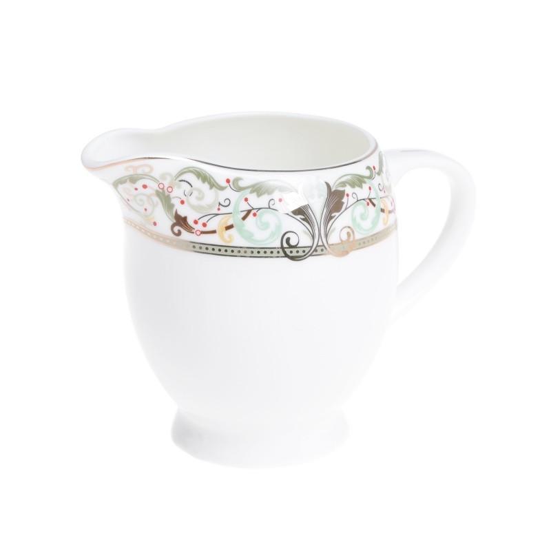 Молочник використовується, щоб розбавляти молоком каву і чай. Це не тільки предмет посуду, а й аксесуар, з яким чаювання стає більш затишним. Молочник виготовлений з кістяної порцеляни, який відрізняється особливою вишуканістю. Він декорований оригінальним рослинним візерунком і є прекрасним доповненням сервірування столу. Ви можете купити молочник окремо або в комплекті з сервізом, в який також входять чайник, чашки з блюдцями, цукорниця.