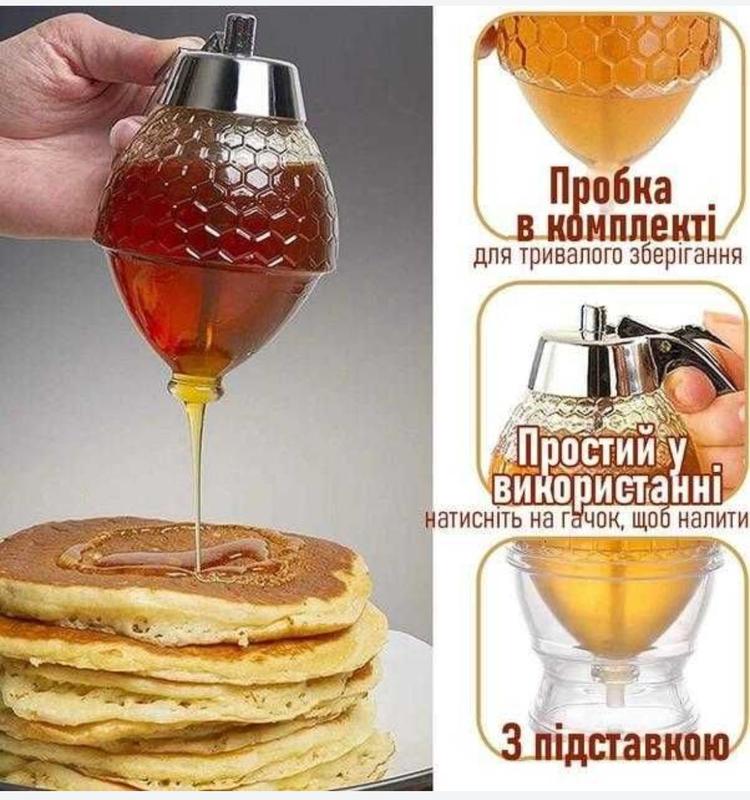 Диспенсер для меду та соусів – це чудовий пристрій для господарок, їм можна поливати смачні млинці медом чи конфітюром. М'ясо доповнити запашним соусом. Закрийте шийку диспенсера знизу спеціальною заглушкою. Потім необхідно відкрити металеву частину та наповнити посудину, вставте дозатор та закрийте кришку. Заберіть заглушку, і Ви зможете насолоджуватися гарною подачею своїх кулінарних шедеврів, вишукано политим медом, кремом чи соусом.Переваги:• Легка вага та компактні розміри; • Прозора основа дозволяє бачити вміст судини; • Підставка дозволяє залишатися приладу у вертикальному положенні, навіть якщо вмісту залишилося мало, воно не залишиться на стінках ; • Зручно наповнювати та легко використовувати; • Підходить для соусів та солодощів рідкої консистенції. Характеристики: — Місткість: 200 мл — Матеріал корпусу: акрил — Розмір: 10 х 15 х 8 см