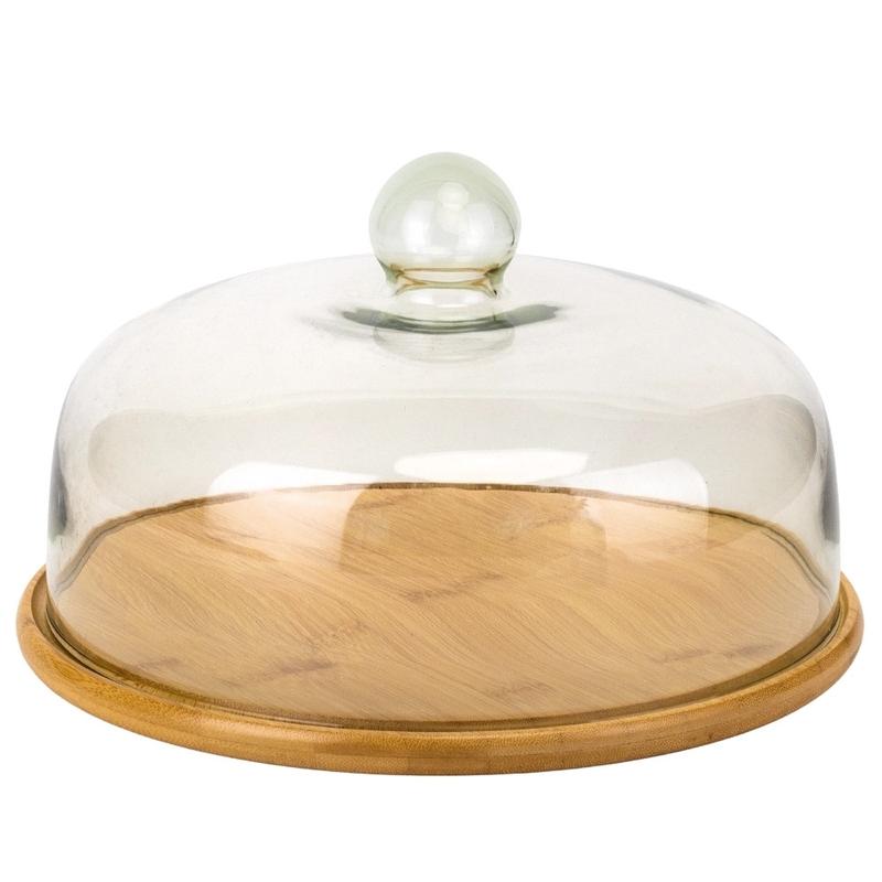 Висота підставки з кришкою — 19 см, діаметр — 32 см. Упакована в розібраному вигляді в подарункову коробку. Бамбукова підставка для торта зі скляною кришкою — це стильний і екологічний аксесуар для сервірування десертів. Підставка виготовлена з натурального бамбука, що забезпечує міцність і тривалий термін експлуатації, а також надає природний шарм.Стільна кришка прозора, даючи змогу демонструвати торт або інші десерти, захищаючи їх від пилу та висихання.
