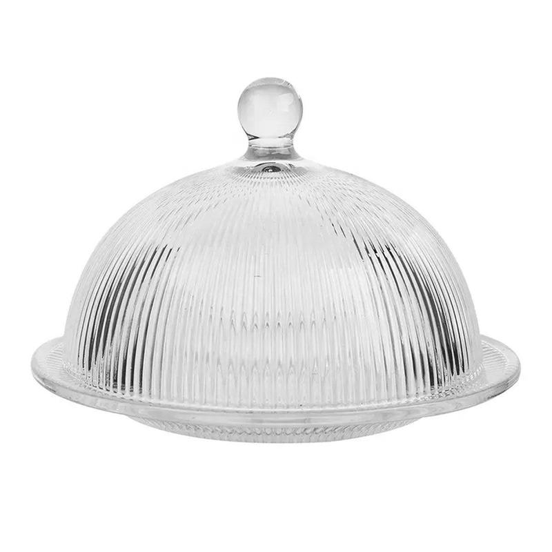 Блюдо сервировочное с крышкой ø 20 см стеклянное прозрачное для десертов, выпечки, фруктов...