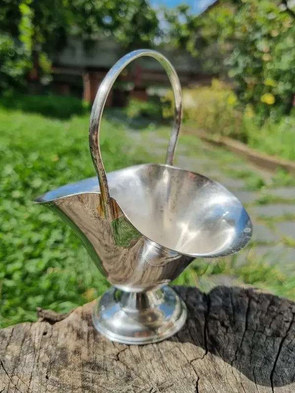 Гарний вазочок — кошик для ягід, цукерок, горішків, соусів, варення тощо. Німеччина. Срібне покриття. Прекрасний стан із незначними слідами часу.