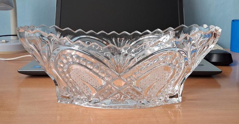 Хрустальная Ваза. Времен СССР. Вес — 1,35кг. Высота — 10,5см. Ширина — 27,5см. Глубина — 15см.