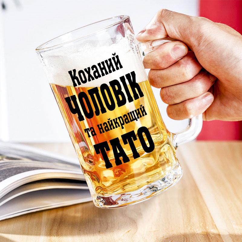 Бокал для пива с надписью "любимый муж и самый лучший папа"