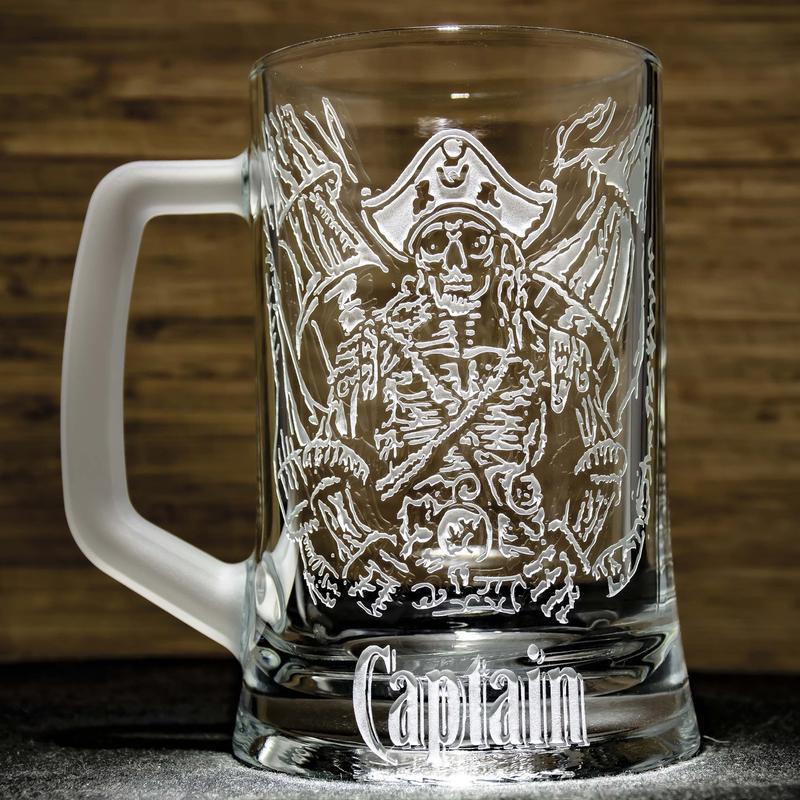 Пивний келих з гравіюванням капітан - скелет пірата з мечем і черепом в шляпі