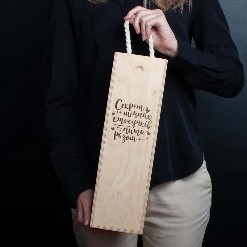 Коробка для вина на одну пляшку "секрет міцних стосунків - пити разом", українська