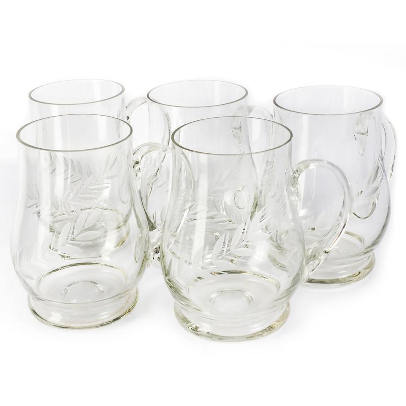 Раритентні вінтажні скляні кухлі часів СРСР для пива / компоту / квасу / глінтвейну по 0,7 л - 5 штук. Гравіювання — колоски. Стан ідеальний, не використовувалися. Об'єм — 0,7 л; Кількість — 5 шт. Ціна за 1 шт - 200 грн. За увесь лот (5 штук) — 850 грн. Можна придбати як усі, так і поштучно. Ціна в оголошенні вказана за 1 кухоль.