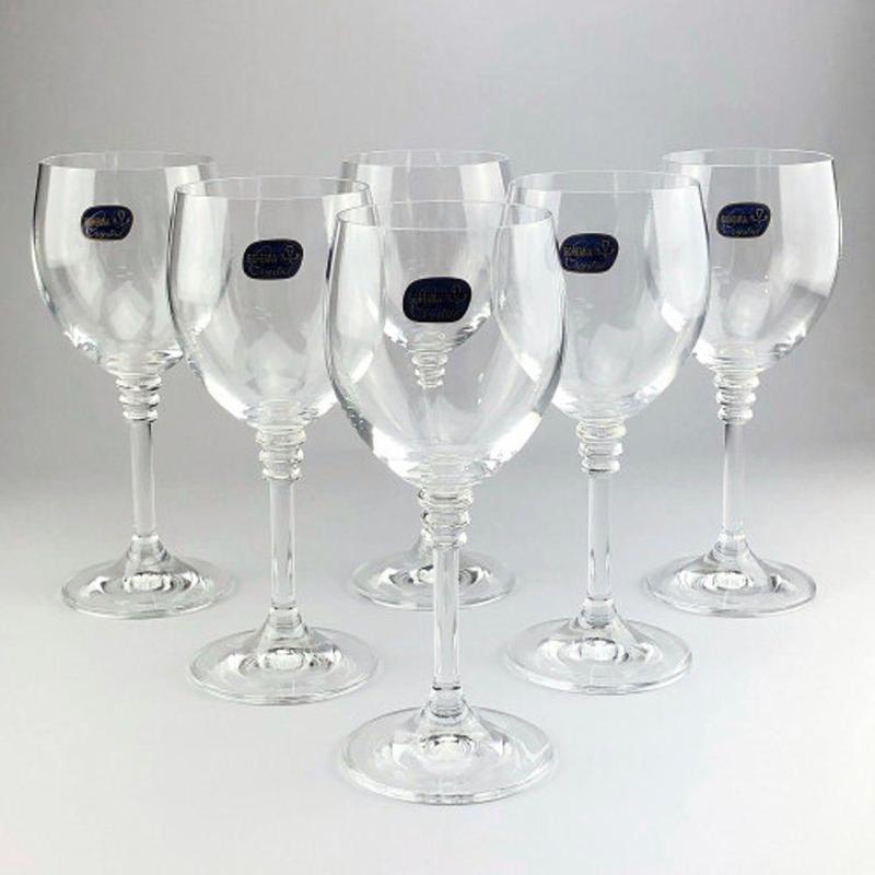 Набір келихів для вина 200 мл/6 Bohemia Olivia Характеристика: Кількість предметів: 6 Об'єм: 200 мл Матеріал: прозоре богемське скло Декор: без декору Паковання: подарункова Використання в посудомийній машині: так, користуючись програмою з низькою температурою Виробник: Bohemia, Чехія