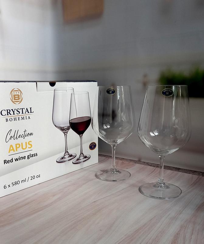Набір келихів для вина 580 мл/6 шт Bohemia APUS Характеристика: Об'єм 580 мл Кількість у наборі 6 шт. Матеріал: прозоре богемське скло; Декор: без декора; Паковання: подарункова; Використання в посудомийній машині: так, користуючись програмою з низькою температурою; Виробник: Bohemia (Чехія).