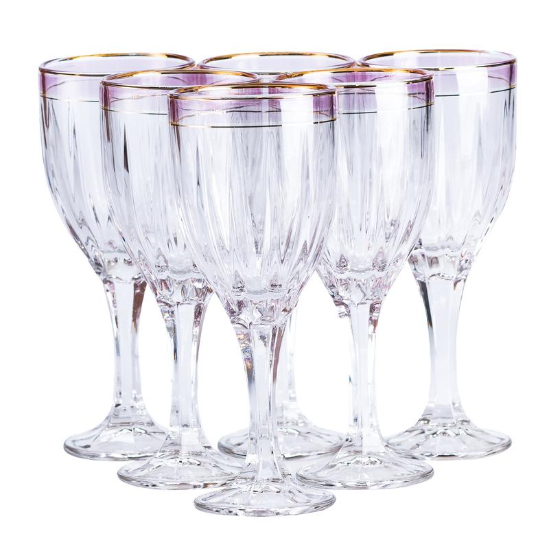 Келихи для вина із золотою облямівкою 6 шт по 250 мл рожевий hp548