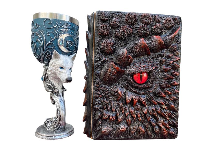 Подарунковий набір келих 3d вовк і блокнот 3d «око пламінного дракона»