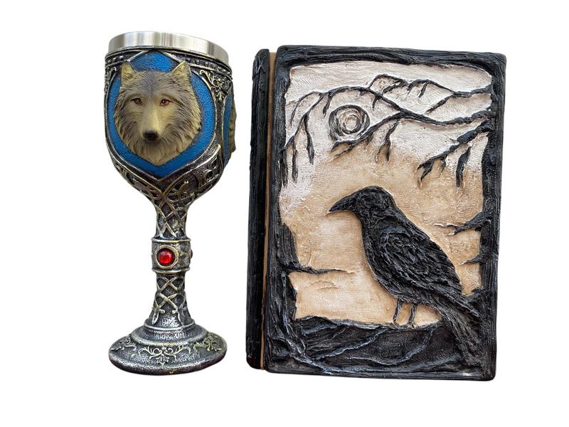 Подарунковий набір келих 3d вовки та блокнот 3d «тінь ворона»