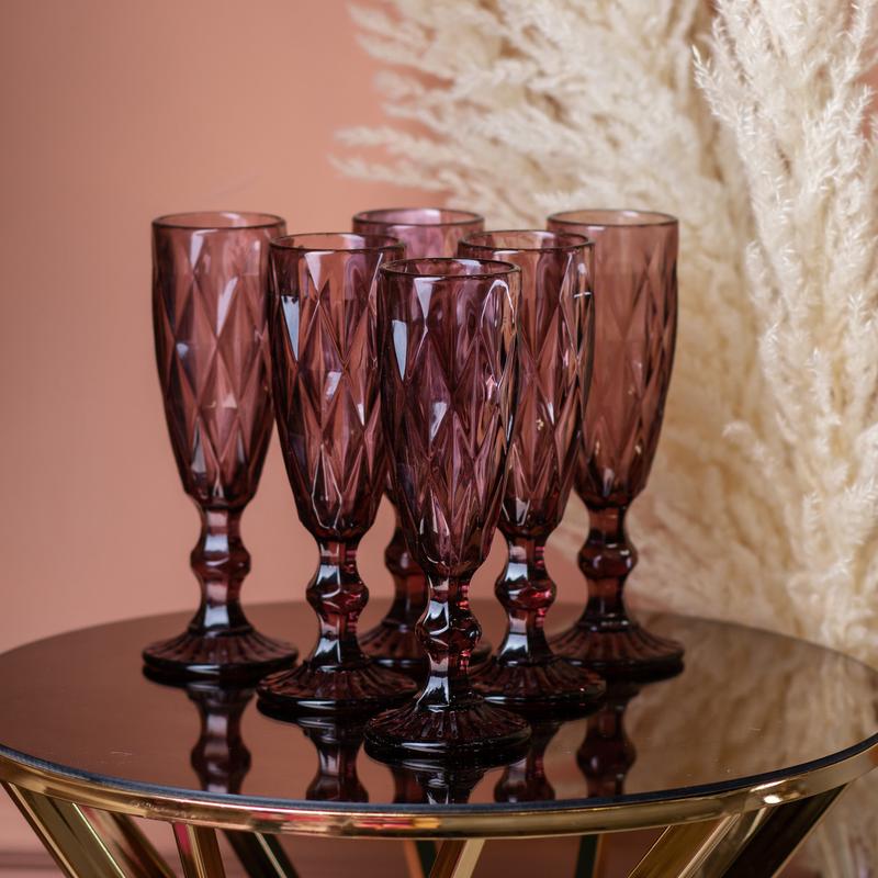 Набір келихів для шампанського 6 штук по 180 мл рожевий