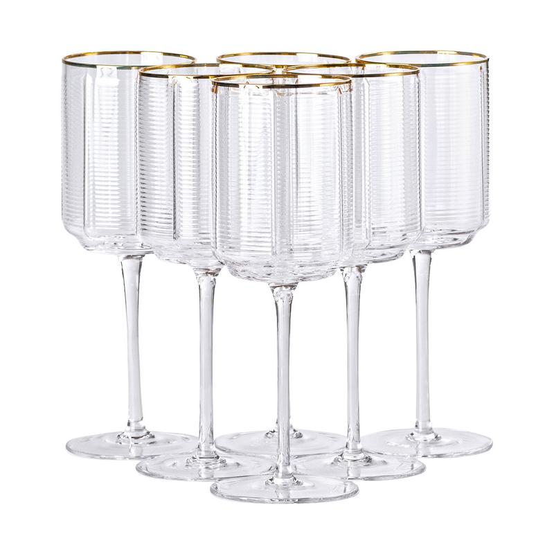 Набор состоит из шести изящных стеклянных бокалов для вина, которые привлекают внимание своей уникальной текстурой. Каждый бокал выполнен из прозрачного стекла, что позволяет полностью насладиться цветом и ароматом вина. Благодаря необычной текстуре поверхности, бокалы становятся стильным акцентом на любом праздничном столе, добавляя оригинальности и современности сервировке. С объемом 450 мл, бокалы подходят для разных видов вина — от насыщенного красного до легкого белого. Высота бокала составляет 22 см, что обеспечивает удобное держание и позволяет аромату вина раскрыться в полной мере. Интересная текстура придает бокалам дополнительную глубину, создавая игру света и тени на их поверхности. Характеристики: Количество: 6 штук Объем: 450 мл Высота: 22 см Материал: стекло Преимущества: Оригинальная текстура добавляет стильный акцент и современность сервировке. Объем 450 мл подходит для различных видов вина, включая красное и белое. Позволяет наслаждаться цветом и ароматом напитка в полной мере. Высота 22 см обеспечивает комфортное держание и раскрытие аромата вина. Игра света и тени на текстурированной поверхности создает визуальный интерес и атмосферу изысканности. Уход: Рекомендуется мыть вручную с мягкими моющими средствами, чтобы сохранить блеск и целостность золотого ободка. Избегайте использования абразивных губок и посудомоечных машин, чтобы предотвратить повреждение декора. Храните в вертикальном положении, чтобы избежать царапин и сколов на поверхности.