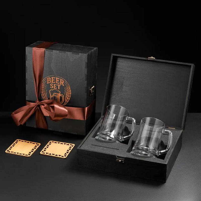 Бокали для пива з гравіюванням в коробці з підставкою скляний подарунковий набір для чолов...