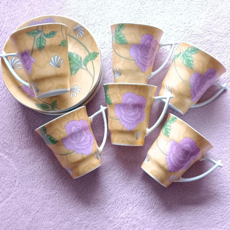 Чайный набор чашек на 6 персон: 6 чашек + 6 блюдец. Чашки среднего размера. Использовался 1 раз. Продается, поскольку не используется.