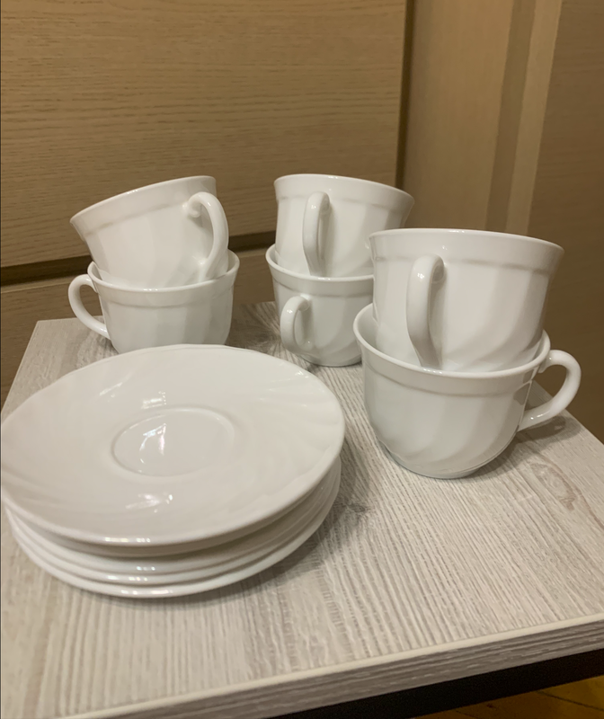 У наборі 6 чашечок та 6 блюдць, стояв на поличці і у користуванні майже не був, стан нового. 6 чашок об‘ємом 220 мл, 6 блюдець діаметром 14,5 см. Доставка: 1)самовивіз у Києві; 3)оплтата на карту і відправка Новою/укрпоштою