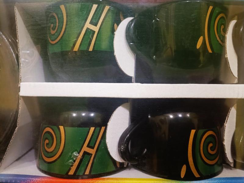 Гарний чайний сервіз 6 чашок і 6 блюдець. Колір чорний із зеленим орнаментом, підійде під будь-який інтер'єр. Новий в пакованні. Виробник Польща