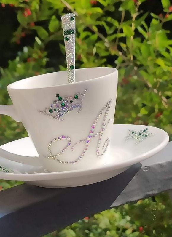 Сервиз кофейный с инкрустацией.Чашка ,блюдце и ложка .Буква "А" Под заказ все буквы. Срок изготовления 5-7дней.