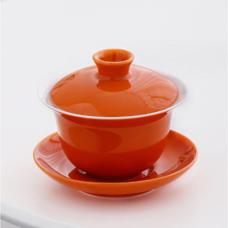 Гайвань жовтогарячий туман 145 мл кераміка, чоу — посуд із трьох предметів для чайної цере...