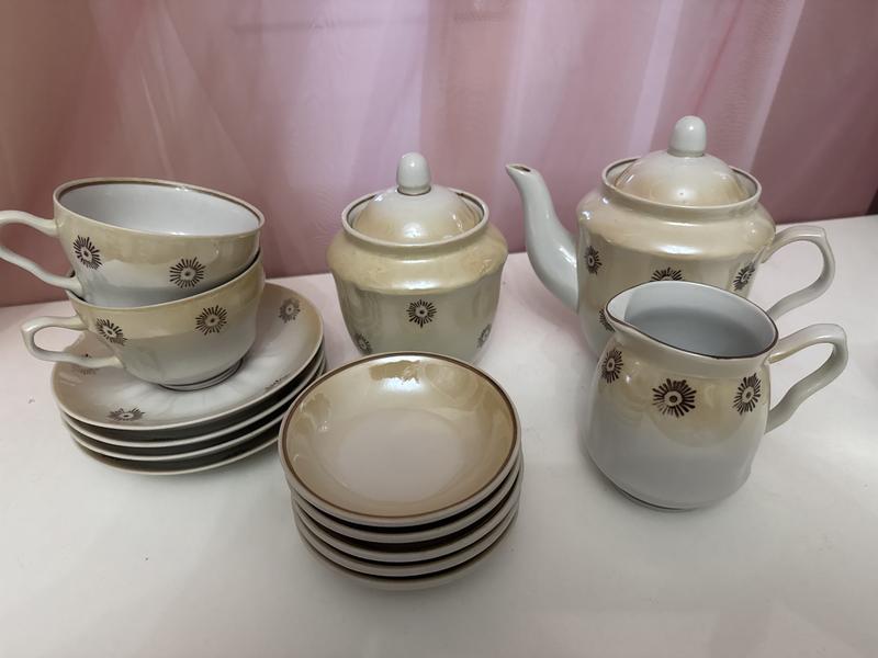 2 чашки 4 блюдца из них 2 со сколами 5 мини блюдец Сахарница Заварник Молочник