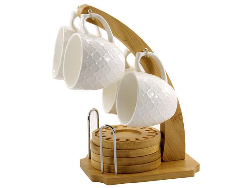 Набір посуду interos з 4 предметів порцелянових чашок на дерев'яній стійці 160 мл білий (p...