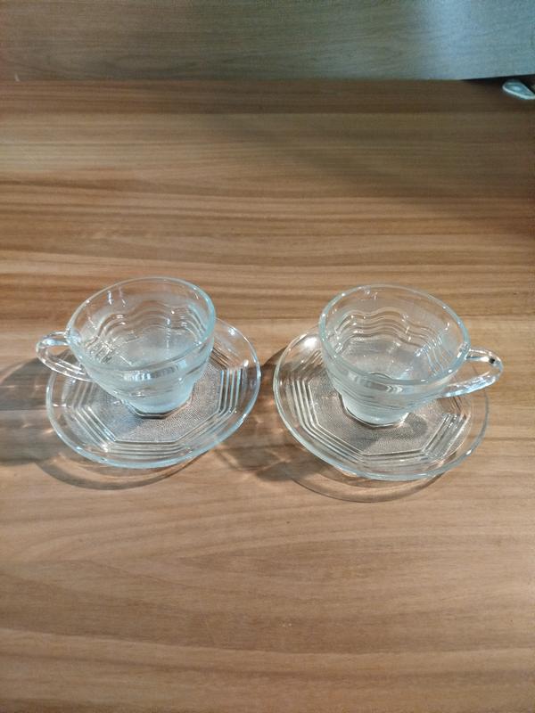 На зображенні — скляна чашка з блюдцем. Це набір для чаю Wheaton Crystal, виготовлений зі скла. ціна за 2шт.