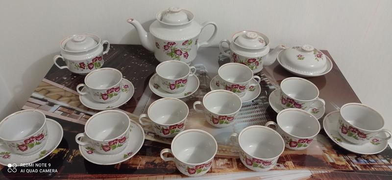 Сервиз на 12 человек, новый. Состав 1 великий чайник 1 маленький чайник 1 сахарница 1 маселница 12 чашок 12 тарелочек.
