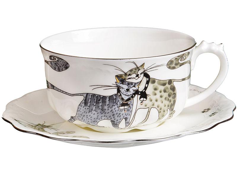 Чайный набор Lefard Коты на 2 предмета 400 мл 264-645 материал-фарфор чашка- 1 шт. 400 мл.; блюдце- 1 шт. 17 см.
