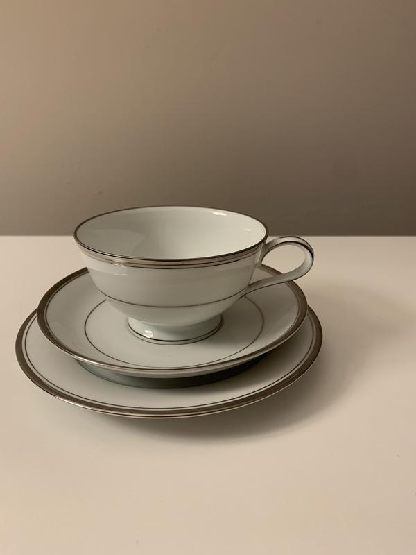 вінтажна чайна трійка: чашка + блюдце + десертна тарілка 🔹 Бренд: Zylstra 🔹 Серія: Silver Ecstasy 🔹 Матеріал: тонка порцеляна (Select Fine China) 🔹 Виробництво: Японія 🔹 Оздоблення: срібна кайма, ручна робота (Handcrafted) ✨ Стан: ідеальний Без сколів, тріщин та реставрацій. Срібна кайма збережена Підійде для чаю, кави, сервірування столу або колекціонування вінтажного посуду. ⚠️ Рекомендації по догляду: — не мити в посудомийній машині — не використовувати в мікрохвильовій печі 💰 Ціна: 1200 грн за 1 трійку В наявності 3 комплекти 📦 Відправка Новою поштою / Укрпоштою